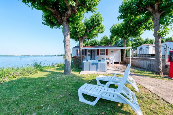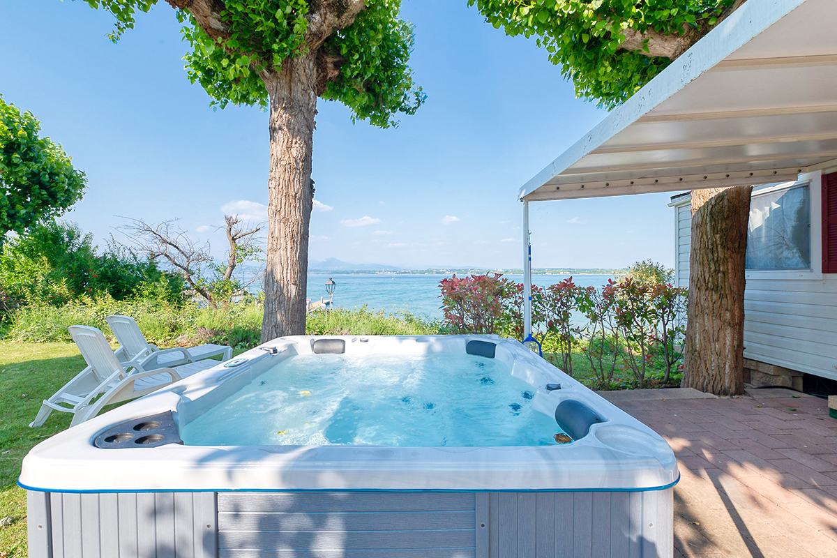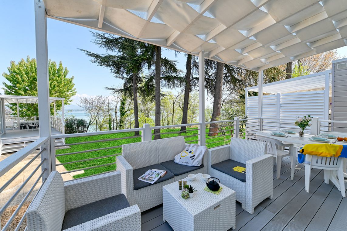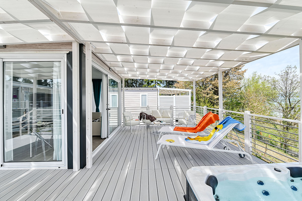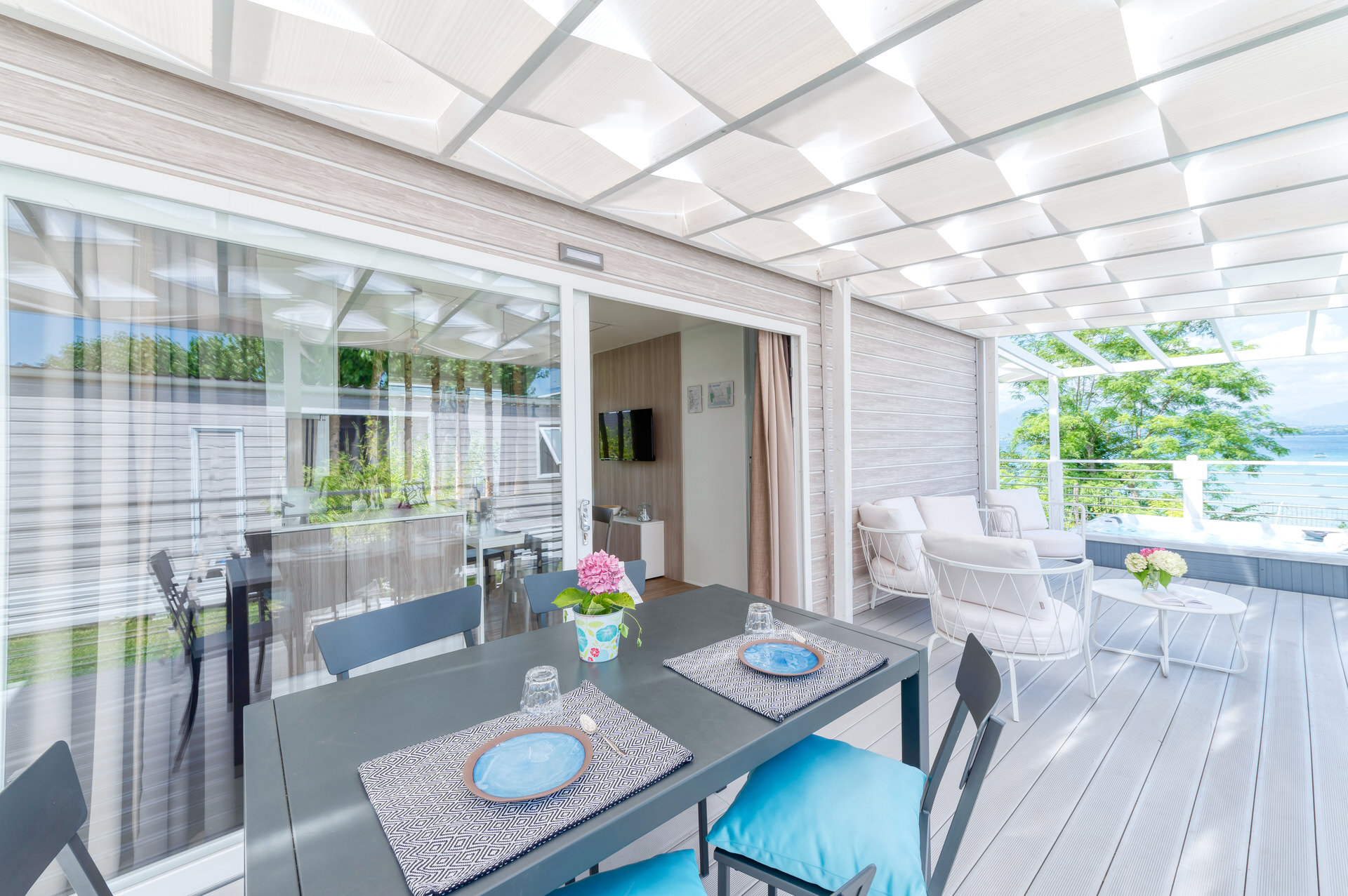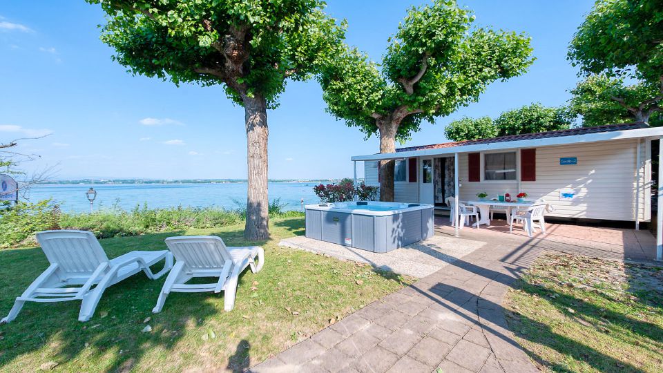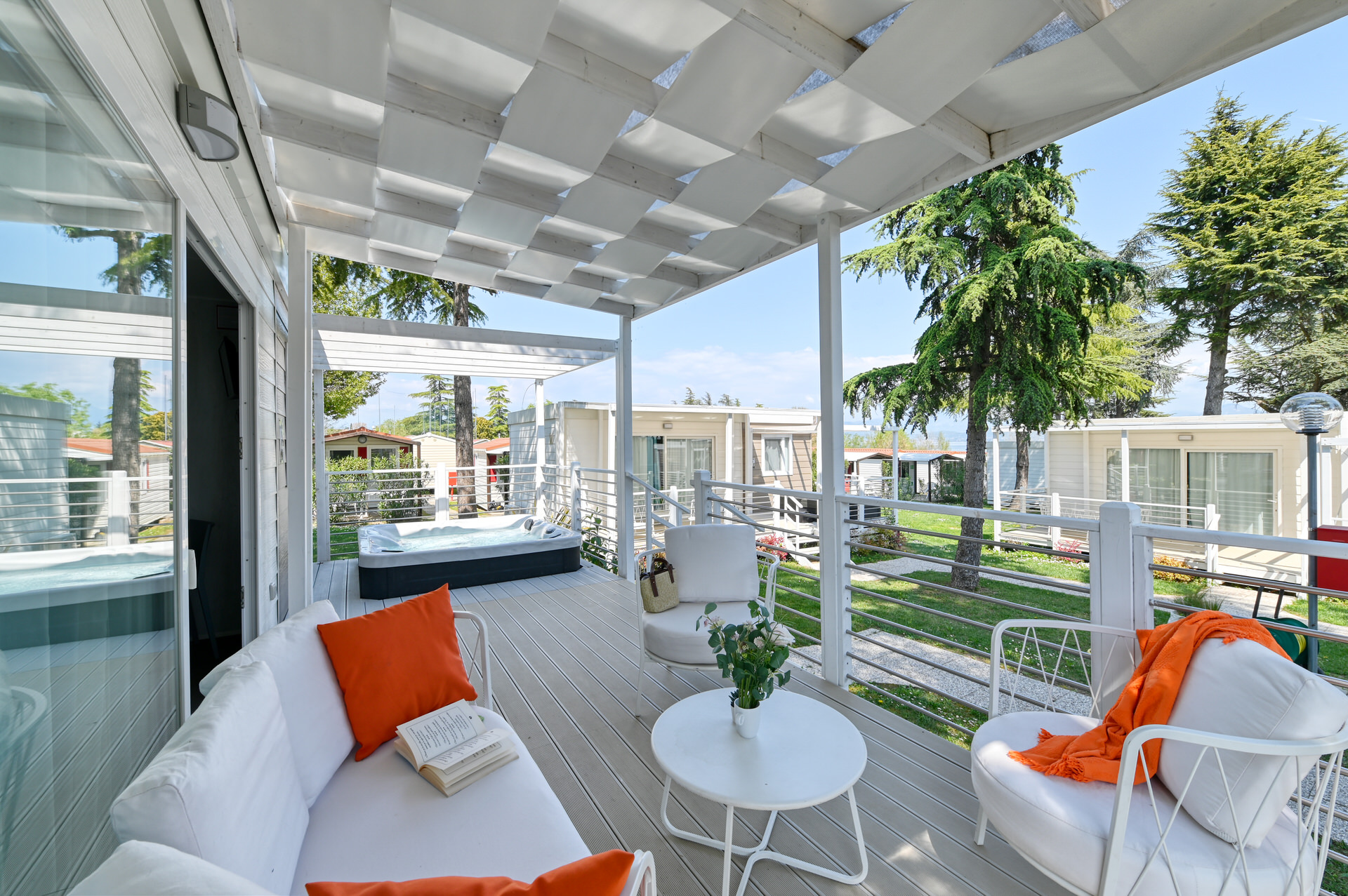 Die herrliche Holzterrasse, der Stolz dieses luxuriösen Mobilheims, ist mit einem privaten Mini-Hydromassage-Pool und einem raffinierten Wohnzimmer geschmückt, wo Sie unvergessliche Momente verbringen und den herrlichen Gardasee bewundern können!