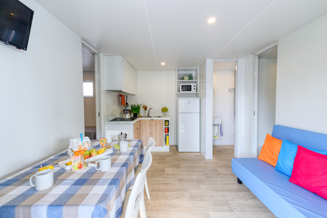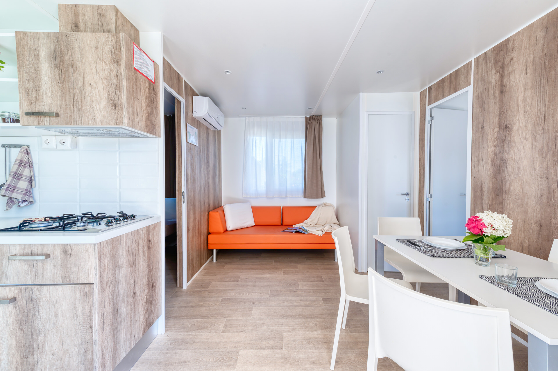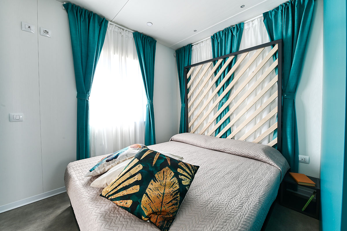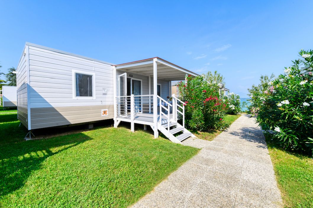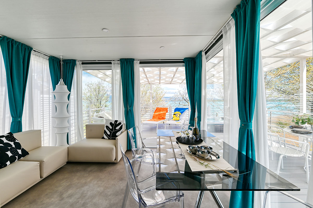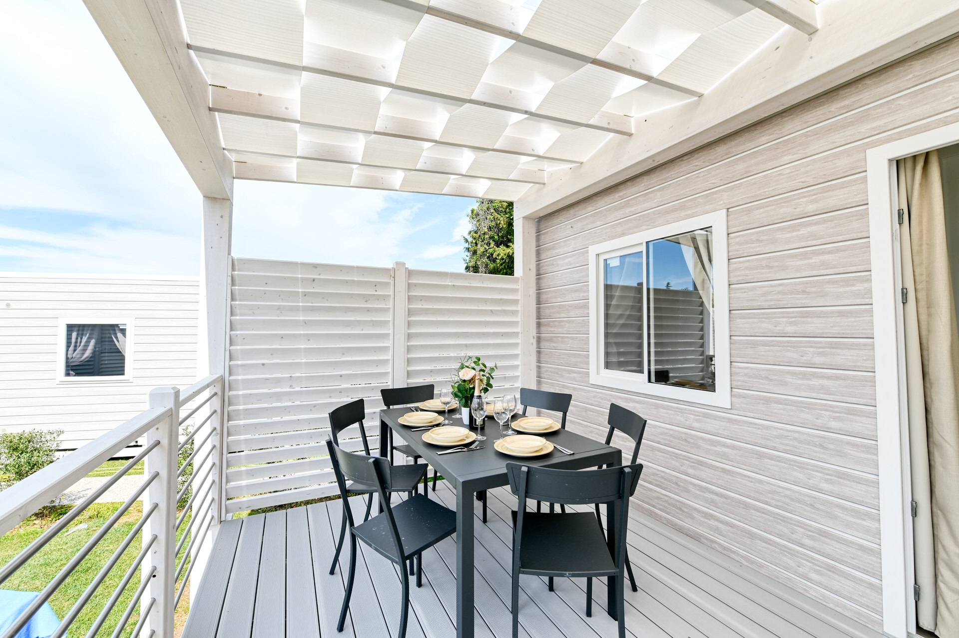 Eleganz, ein weiter Raum und Bequemlichkeit vereinen sich in Garden, die größte Mobilheim von San Benedetto Camping Relais.