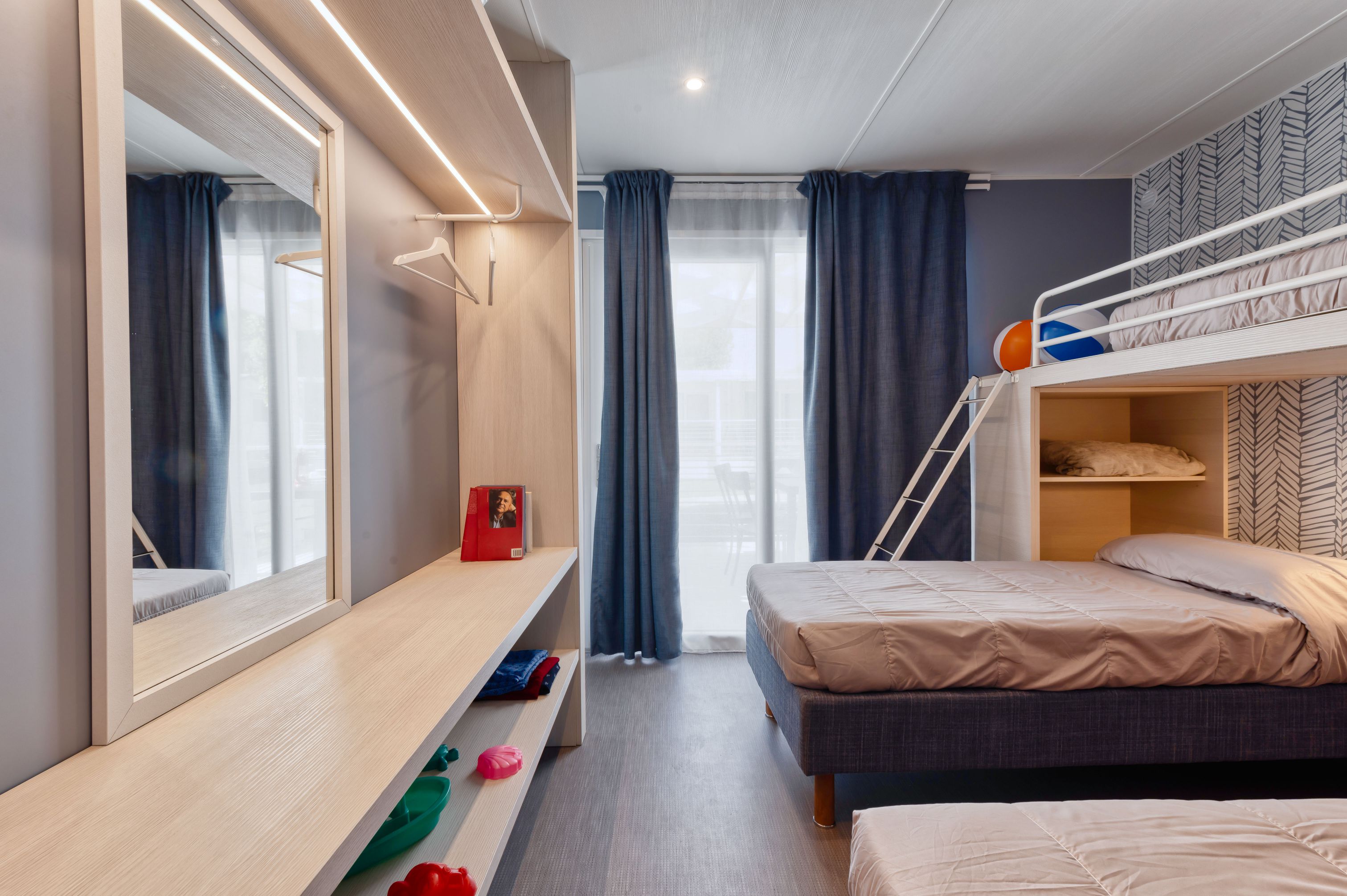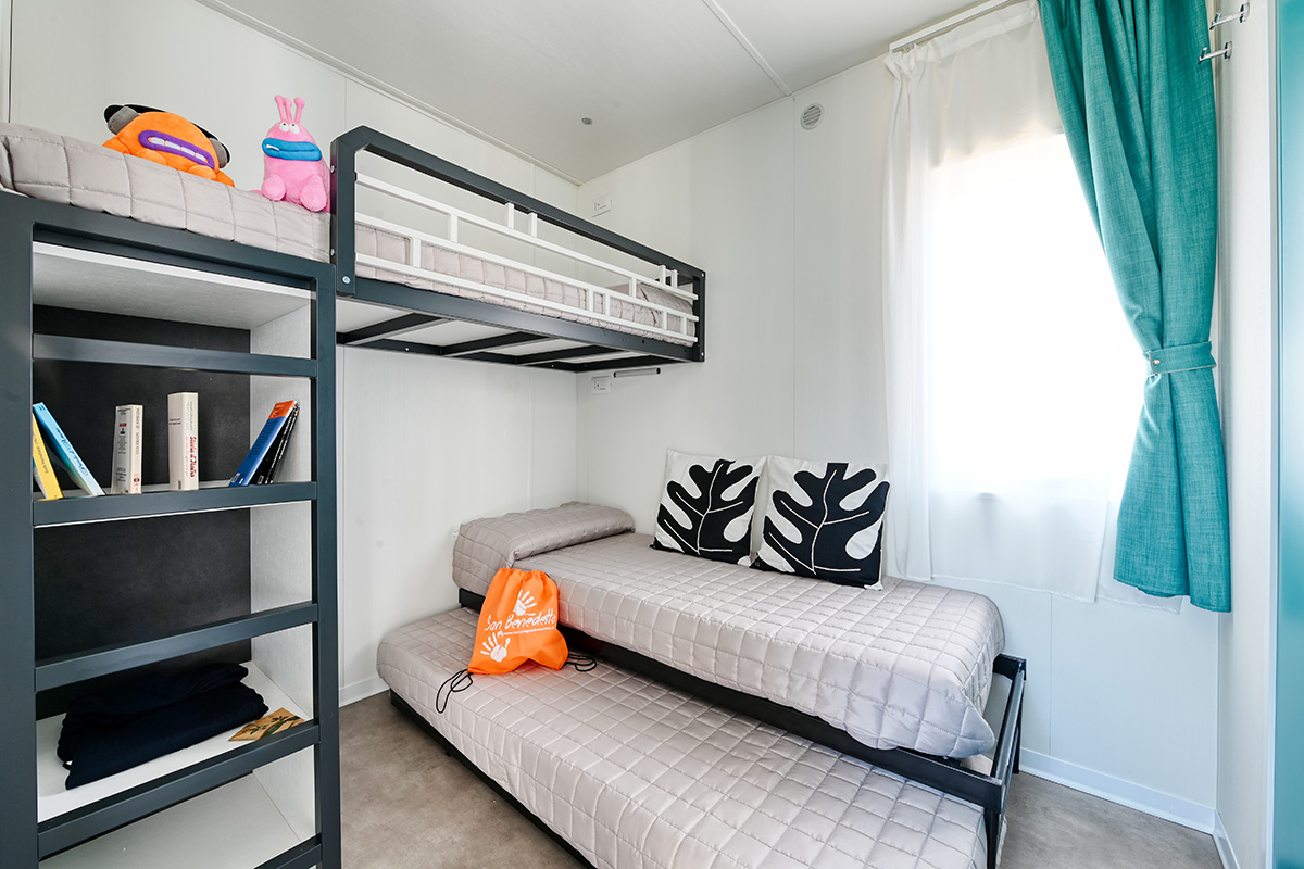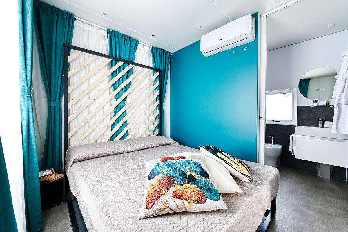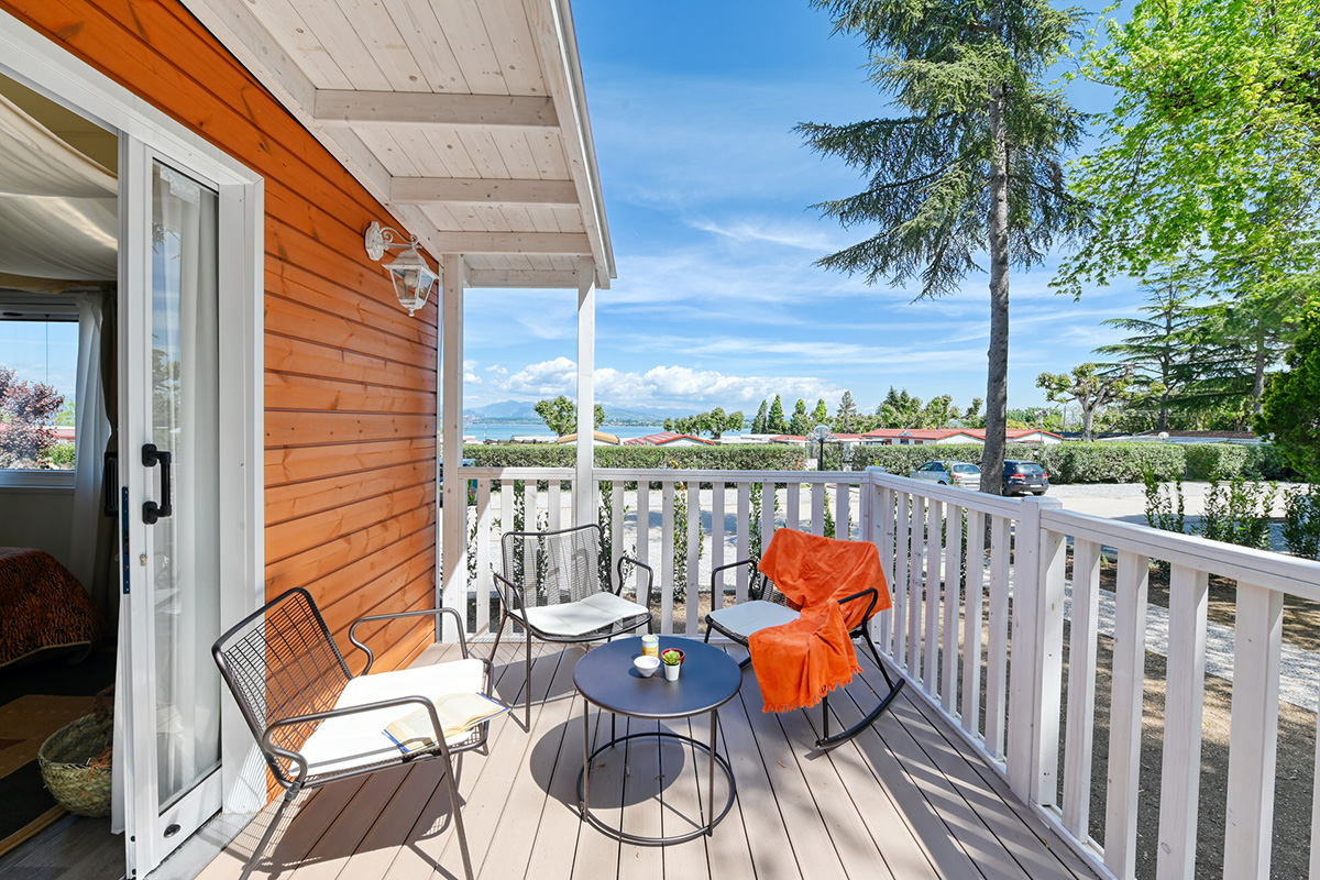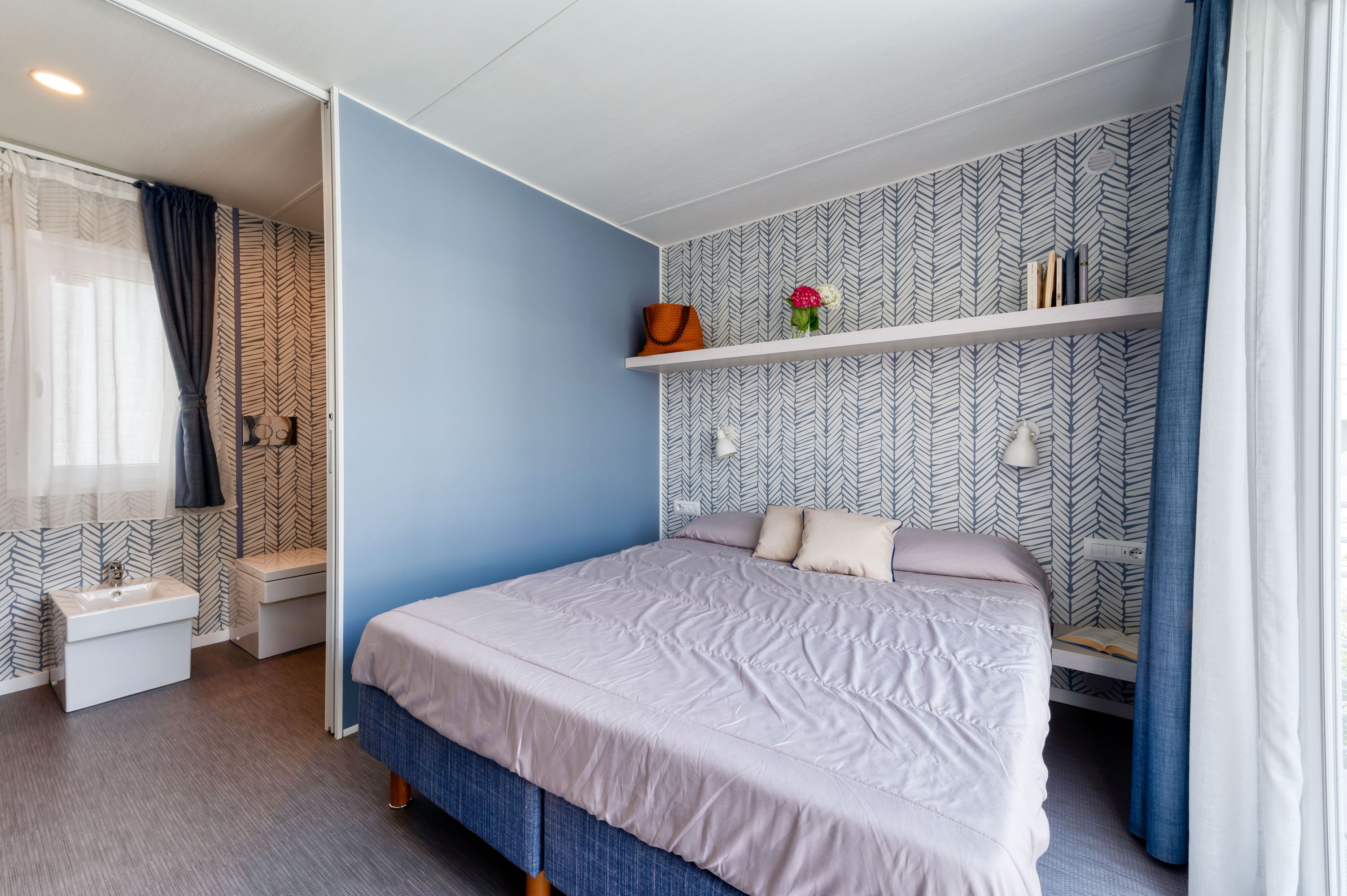 Eleganz, ein weiter Raum und Bequemlichkeit vereinen sich in Garden, die größte Mobilheim von San Benedetto Camping Relais.