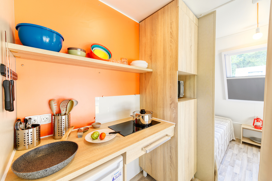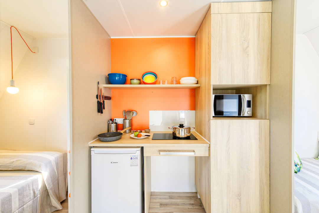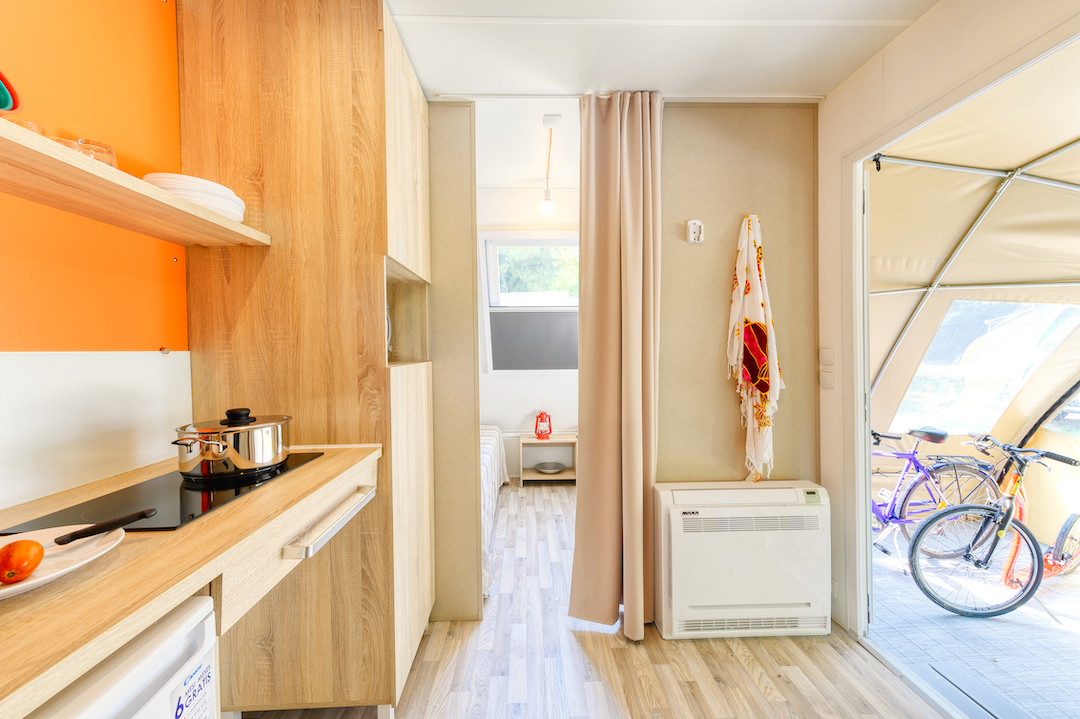 Coco Easy ist die ideale Alternative zum Camping und Village, ist ein Spaß für die ganze Famile und ihre Form erinnert an den Geist der frischen Luft, ohne auf Komfort zu verzichten Village: ein Schlafzimmer mit Doppelbett und einen Wohnbereich mit zwei Sofas, die sich in wenigen Schritten in 2 bequeme Einzelbetten verwandeln. Das Coco Easy bietet große Fenster mit Blick auf den Himmel, einen gemütlichen Wohnbereich mit einem Kühlschrank und einem Induktionskochfeld.