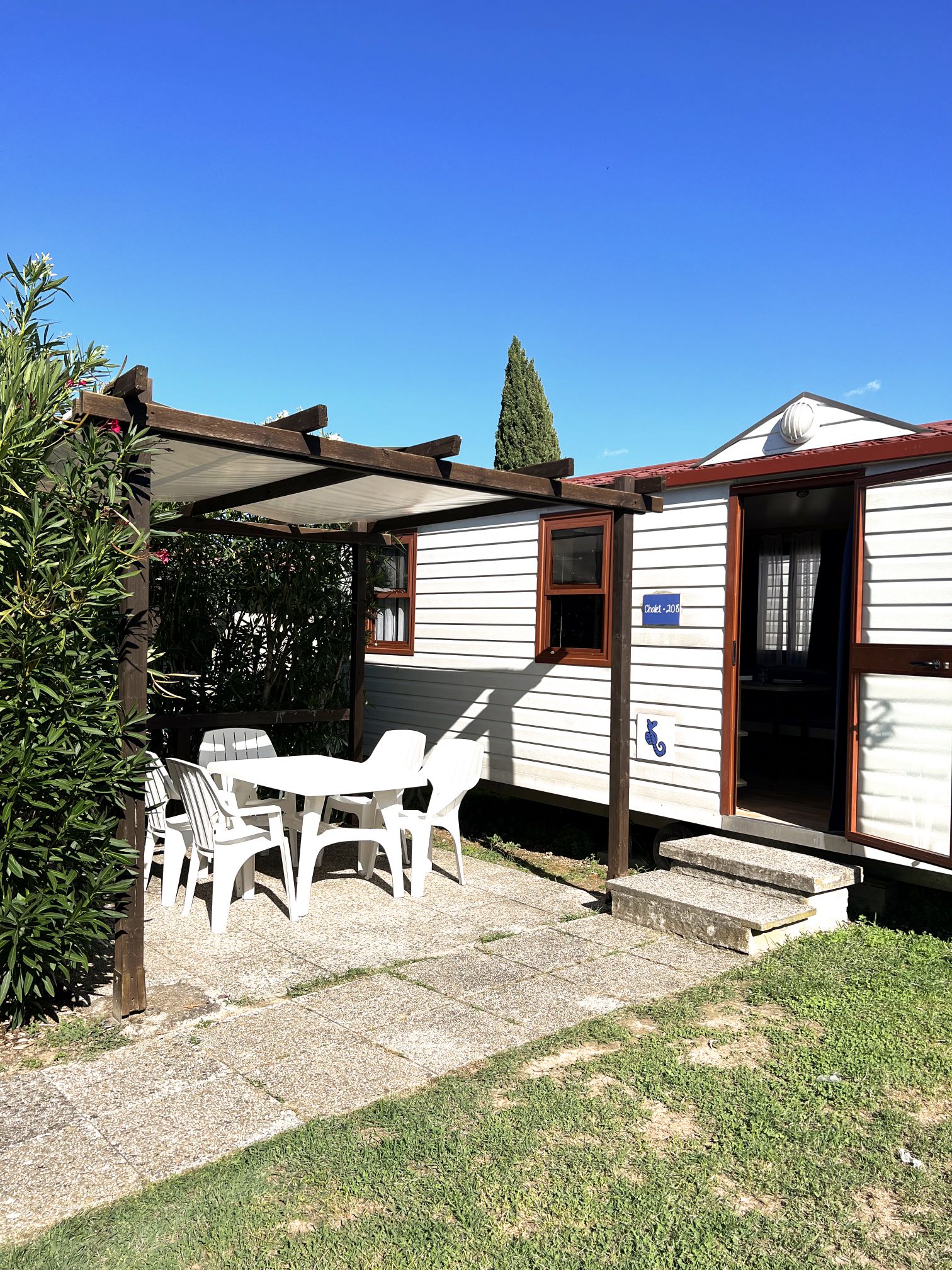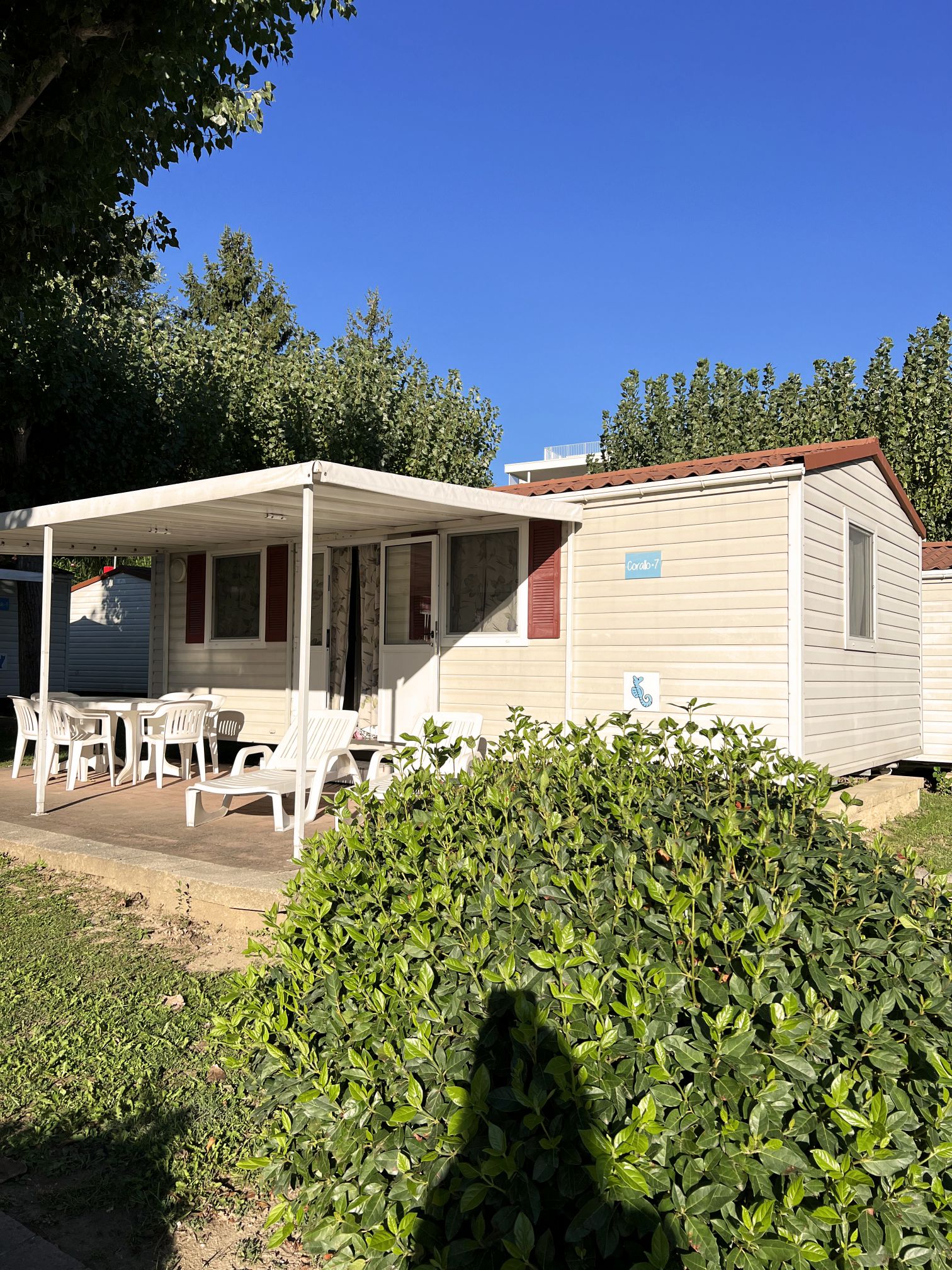 Die besonders durchdachte Einrichtung und Umgebung garantieren Frische und Modernität und bieten die Erfahrung eines angenehmen Urlaubs in der Solidität dieses Mobilheims mit Glamping-Geist!
