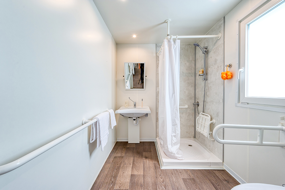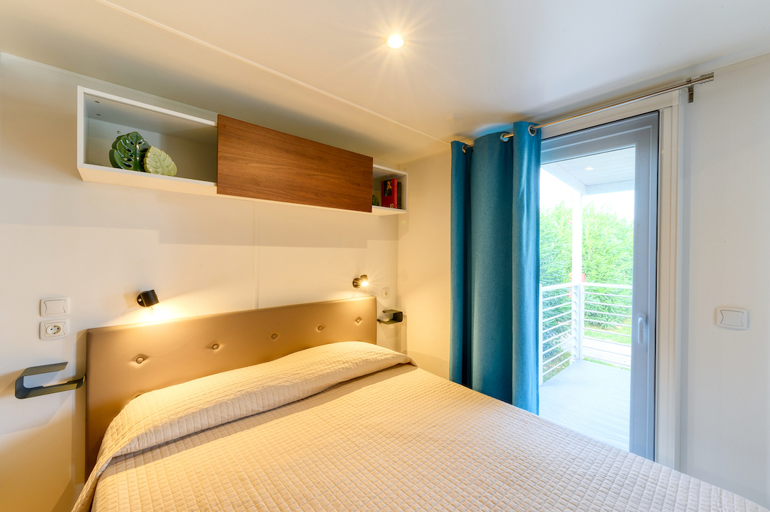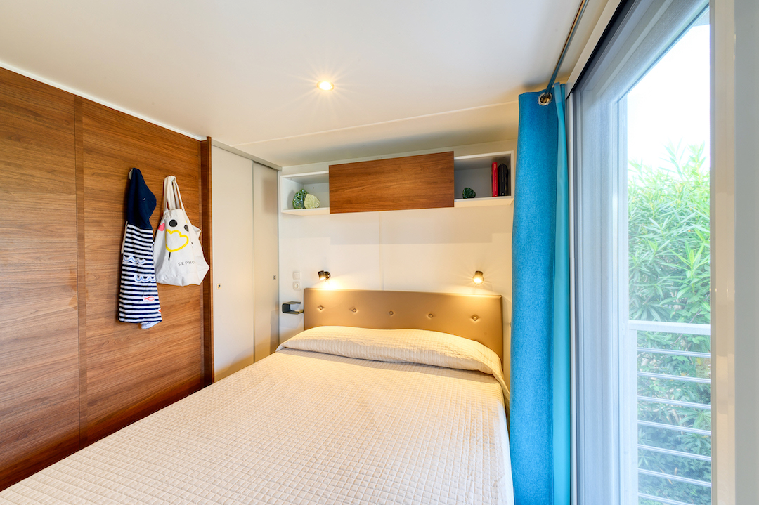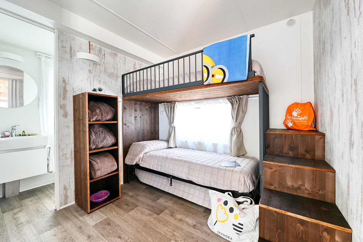 Wir haben an dieses Mobilheim gedacht, um auch Menschen mit eingeschränkter Mobilität jeglichen Komfort zu bieten. Mit seinen 32 m² ist Winner ideal für 4 Personen und bietet ein geräumiges Schlafzimmer mit Doppelbett und ein Schlafzimmer mit 2 Einzelbetten, ein großes und komfortables Wohnzimmer mit Sat-TV, eine Küchenzeile, Kühlschrankund, ein komfortables Badezimmer mit speziell ausgestatteter Dusche, Klimaanlage/Heizung.