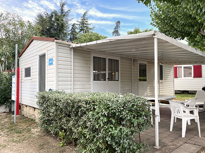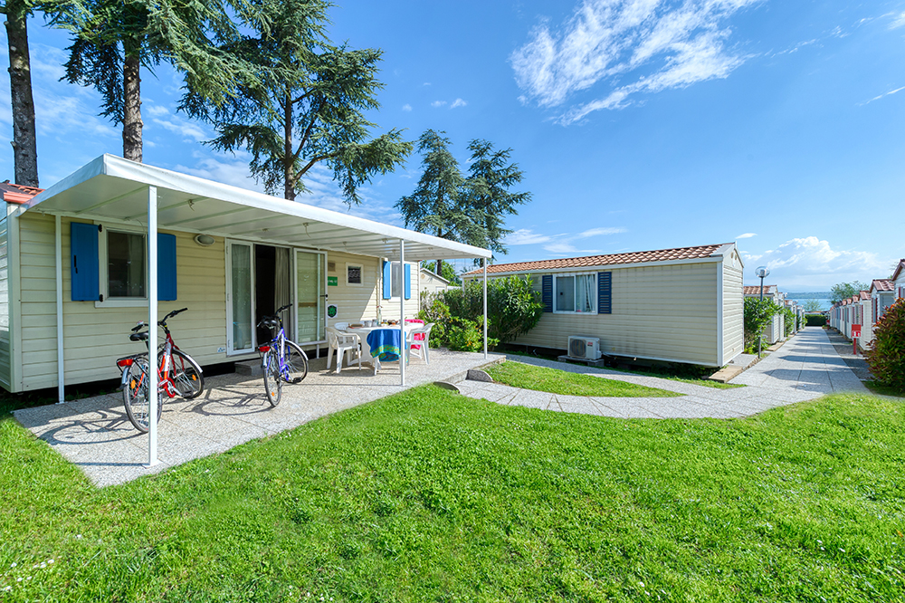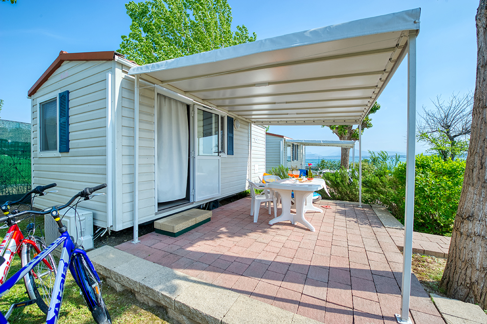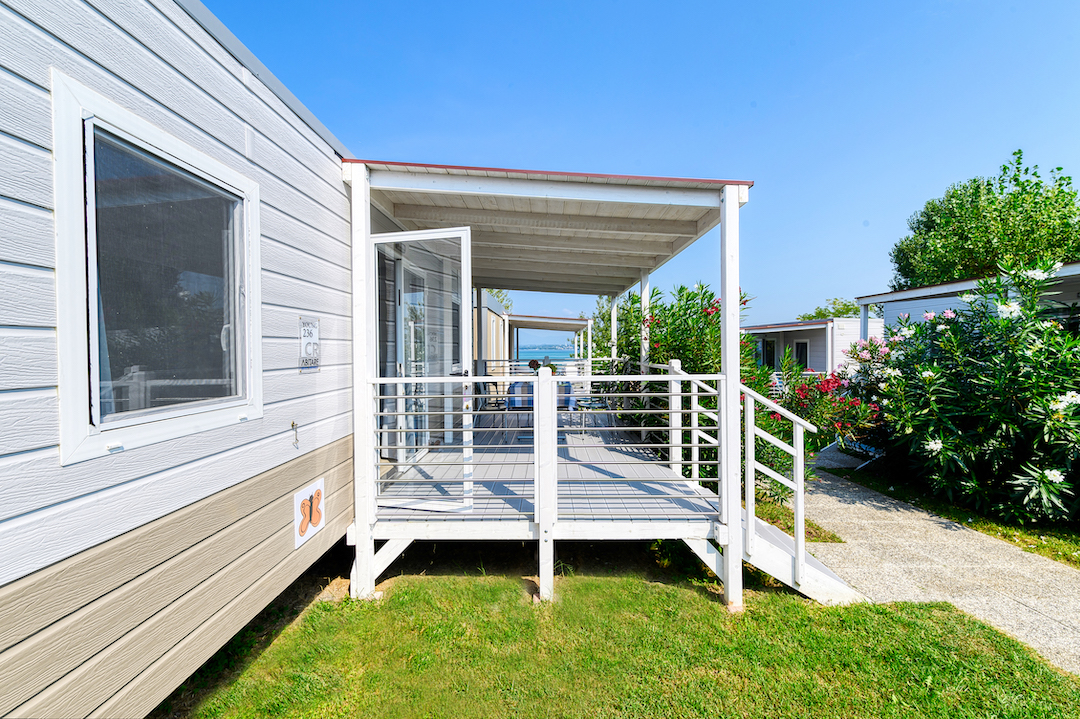 Dieses Mobilheim ist durch die großzügige Größe von 38 m2 mit einer benedeidenswerten Lage am Gardasee, besonders malerisch.