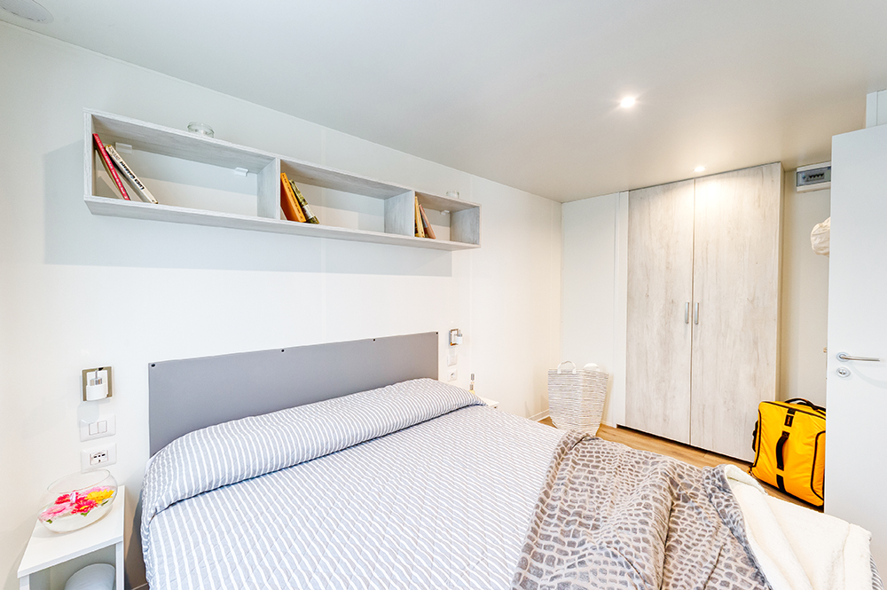 Das Doppelbettzimmer, mit privatem Badezimmer und Dusche mit Chromotherapie, hat eine Glaswand, die eine einzigartige Seeblick hat, und noch von diesem Zimmer haben Sie einen direkten Zutritt auf die Terrasse. Das zweite Schlafzimmer, mit drei bequemten Betten, hat auch ein privates Badezimmer und Dusche mir Chromotherapie.