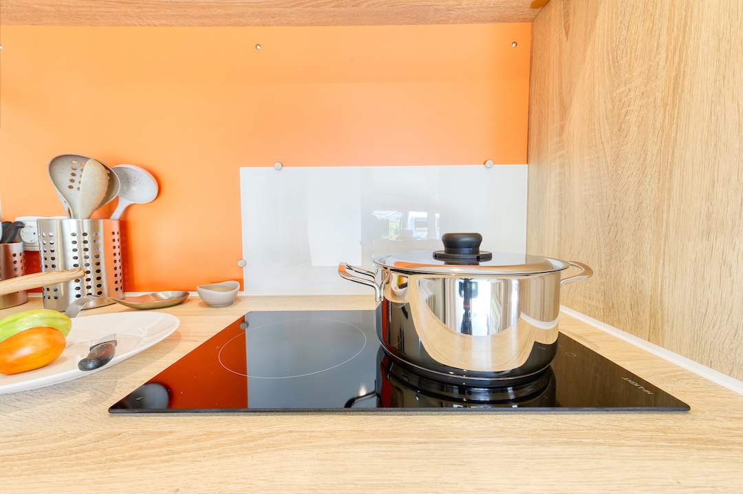 Der Wohnbereich bietet einen halbrunden Küchenbereich, minimalistisch und trendy, ausgestattet mit Induktionsherd, Kühlschrank, Mikrowelle und Geschirrspüler. Ein bequemes Sofa, Sat-TV und Klimaanlage/Heizung garantieren angenehme Momente der Entspannung.